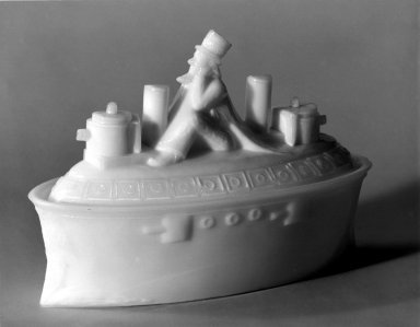 Opalescent Milk Glass Uncle Sam atop Battleship Covered Dish