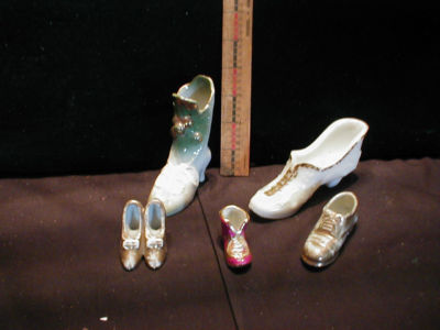 5 Vintage Collectible Porcelain Shoes Boots Limoges - Germany - Japan Milk Glass