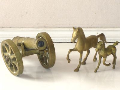 Title (ebay affiliate link): ANTIQUE ART DECO SOLID BRASS OLD WAR CANON MARK 1812 2 HORSE STALLION FIGURINE