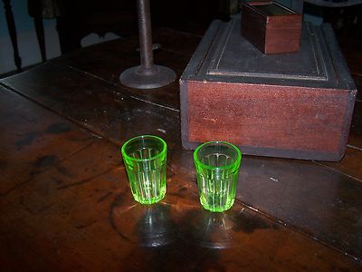 Pair EAPG Vaseline Canary Flint Shot Glasses