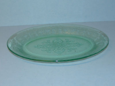 VINTAGE GREEN DEPRESSION GLASS OVAL PLATTER