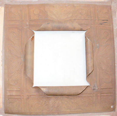 OLD RUSTY PICTURE FRAME MADE FROM ANTIQUE TIN CEILING TILE