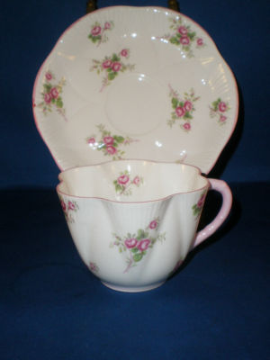 Shelley Cup & Saucer Delicate Pink Roses With Pink Trim Lovely