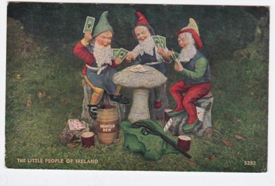 Title (ebay affiliate link): Little People of Ireland Caption Gnomes Playing Cards Postcard