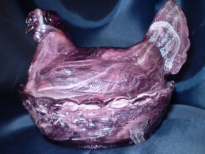 Amethyst milk swirl slag glass hen chicken nesting ring