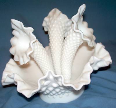 Vintage Fenton Milk Glass Epergne Bowl and 3 6" Horns