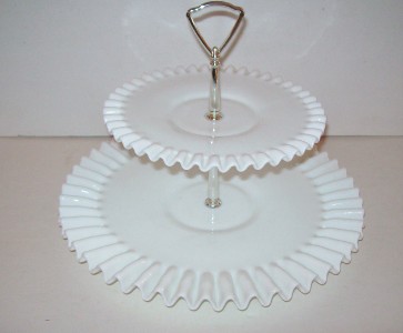 *BEAUTIFUL MILK GLASS 2 -TIER SANDWICH SERVER DISH