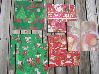 Title (ebay affiliate link): Vintage Christmas Wrapping Paper Lot 12 Sheets Childrens Santa Cat Tree Mouse