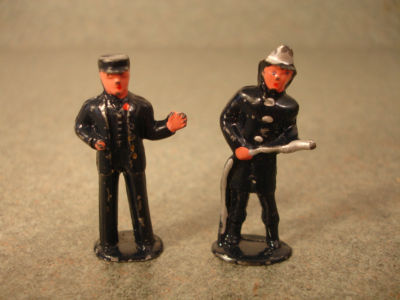 Old Vintage Antique Lead Figures Fireman Conductor .10 cents stamped on bottom