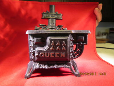 VINTAGE QUEEN MINIATURE CAST IRON STOVE AND ACCESSORIES
