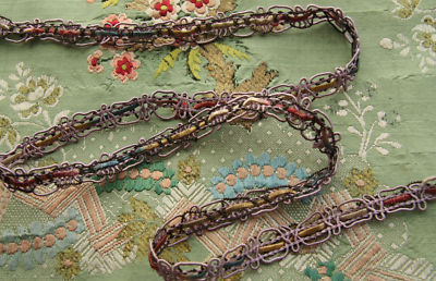 Title (ebay affiliate link): ANTIQUE OMBRE PASSEMENTERIE LACE TRIM METALLIC TOUCHES DOLL BOUDOIR FLAPPER BEAR