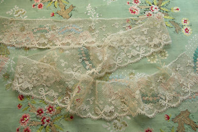 ANTIQUE COTTON INTRICATE DOLL LACE HAND MADE FEEL VALENCIENNES MILLINERY