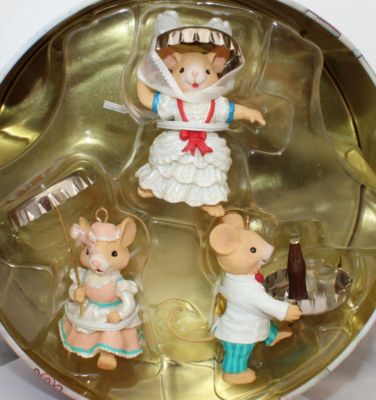Title (ebay affiliate link): COCA ~ COLA TIN 3 COLLECTIBLE MICE CHRISTMAS ORNAMENTS 2" EACH NEW