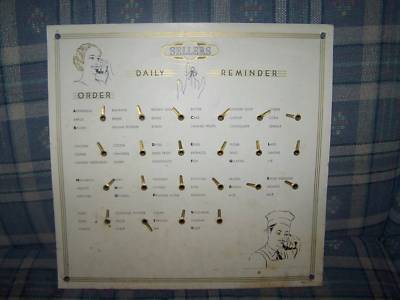 Vtg. Original Sellers Cabinet "Daily Reminder" List