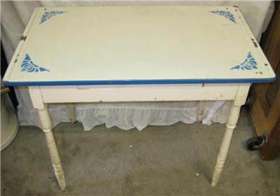 Title (ebay affiliate link): Antique ENAMEL Kitchen DINETTE Table METAL & WOOD !!!