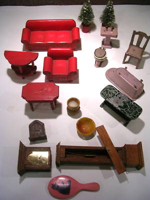 Title (ebay affiliate link): LOT OF ANTIQUE DOLL HOUSE FURNITURE BATHROOM TOOTSIE
