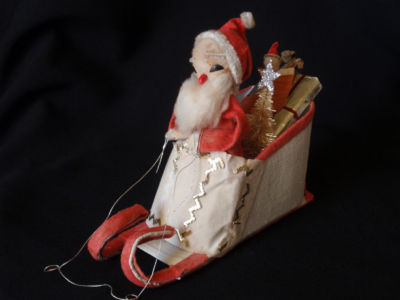Antique Christmas JAPAN Mica Sleigh, Cotton & Chenille Santa, Bottle Brush Tree