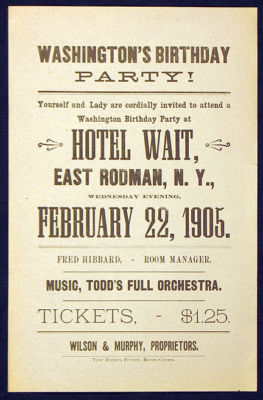 1905 EAST RODMAN NEW YORK Washington's Birthday Party Broadside Barnes Corners