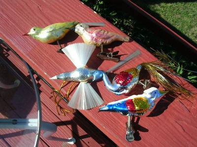 Title (ebay affiliate link): VTG MERCURY GLASS CHRISTMAS ORNAMENTS LOT OF 5 CLIP ON BIRDS HUMMINGBIRD FEATHER