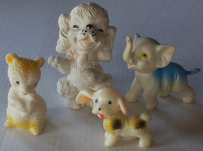 Lot of 4 Vintage Rubber Squeeze Toys Dogs Bear Elephant
