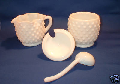 Vintage Milk Glass Hobnail Cream Sugar Set w/ Spoon