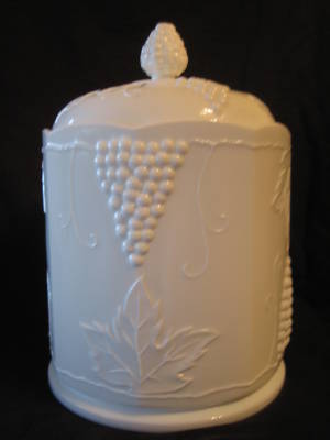 Large Indiana Harvest Grape Milk Glass Canister w/Lid