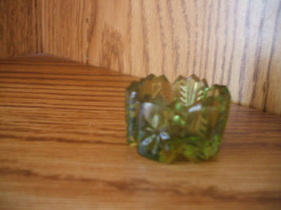 Open Salt Green Or Vasaline Depression Glass Feather and Star