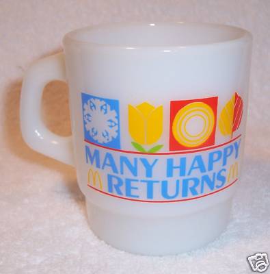 McDONALD'S MANY HAPPY RETURNS MILK GLASS MUG