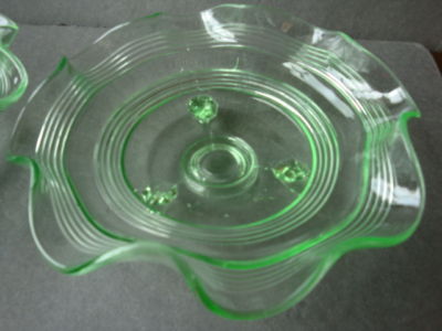 GREEN DEPRESSION GLASS NAPPY WAVY LINES