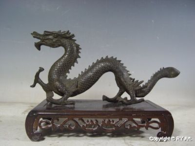 LARGE CHINESE BRONZE DRAGON STATUE 13" W