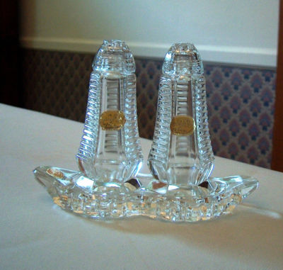 Vintage Salt Pepper S&P Shakers With Tray - CZECH (BOHEMIA) CRYSTAL GLASS