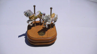 antique porcelain two horse Carousels music box