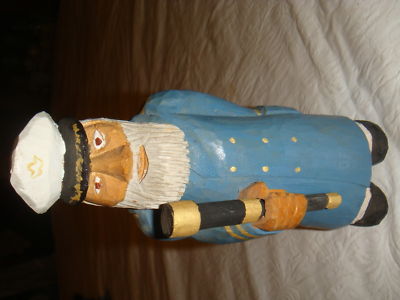 vintage wood carved figurine sea captain spy glass fisherman seaman sailor old