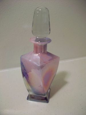 Vintage Curved Art Glass Perfume Bottle w/ Carnival Glass Effects
