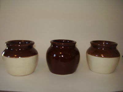 3 Small Vintage Crocks Stoneware "Burnham" "USA" Half-Pint Sized