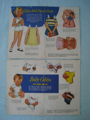 Title (ebay affiliate link): Vtg 50's Gibbs Underwear Co. Gibbs Kids & Baby Gibbs Paper Dolls uncut 12"x 9"