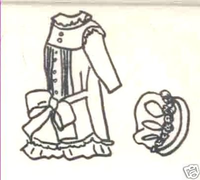 7"ANTIQUE FRENCH BRU/BEBE DOLL APRON-DRESS&HAT PATTERN
