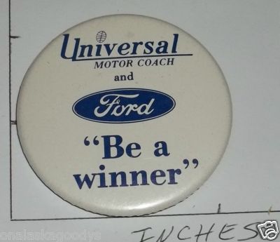 LOGO FORD PIN BACK BUTTON MOTOR COACH UNIVERSAL AD BADGE ORIGINAL VINTAGE
