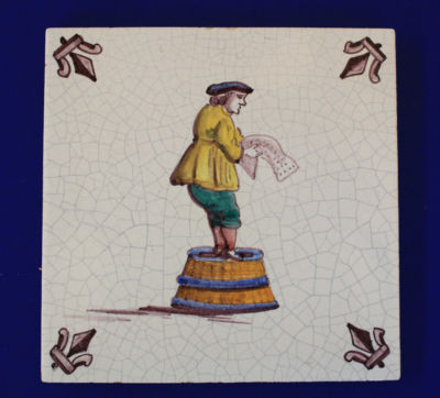 Polychrome Color Delft Dutch tile, stamped Holland, 5.1 X 5.1 inches, 20th c.