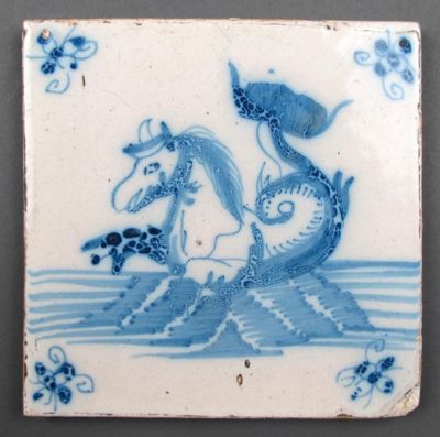 1) Antique Dutch Delft Tile Sea Creature 17th Century