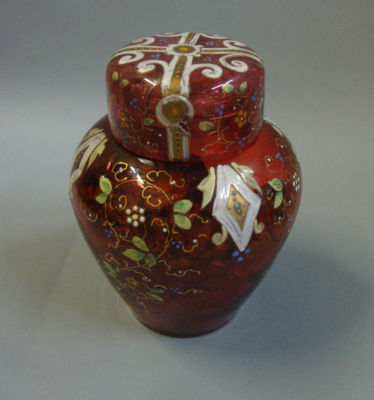 Title (ebay affiliate link): Antique Victorian Decorated Cranberry Glass Potpourri Covered Glass Jar (ginger)