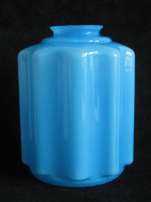 Art Deco Blue Cased Glass Student Light Lamp Sconce Shade Antique