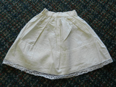 Title (ebay affiliate link): Lovely Antique White Cotton DOLL PETTICOAT Half Slip Pleats Fine LACE