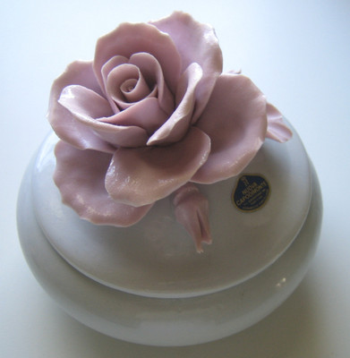 Vintage Nuova Capodimonte Covered Bowl Pink Rose No Chips