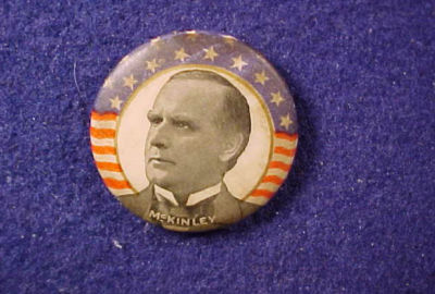 1.25"PIN Button WILLIAM McKINLEY POLITICAL PINBACK Badge 1896 WM Bryan Campaign