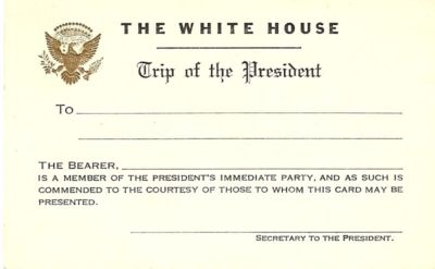 PRESIDENT HARRY TRUMAN ~ WHITE HOUSE - TRIP OF THE PRESIDENT COURTESY CARD