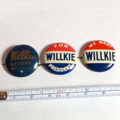 Title (ebay affiliate link): 3 Willkie Presidential Political Pins, Pinback Buttons