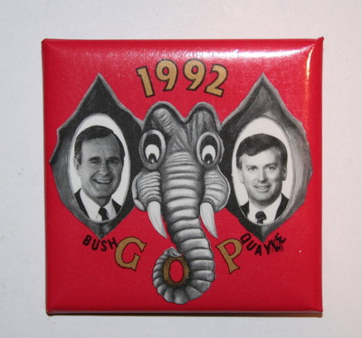 Title (ebay affiliate link): 1992 Bush and Quayle Elephant GOP Jugate Campaign Button Political Pin