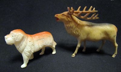 Vintage CELLULOID St. Bernard Dog & Elk, 2 Figures Made in U.S.A.