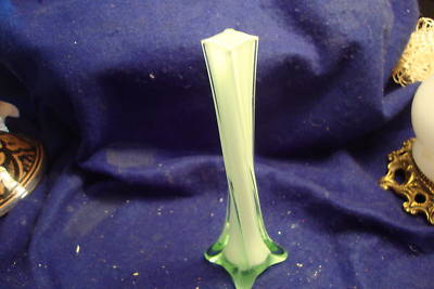 GRANDMAS GLASS 8 INCH GREEN AND WHITE MURANO GLASS VASE